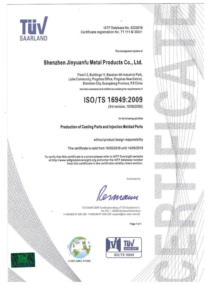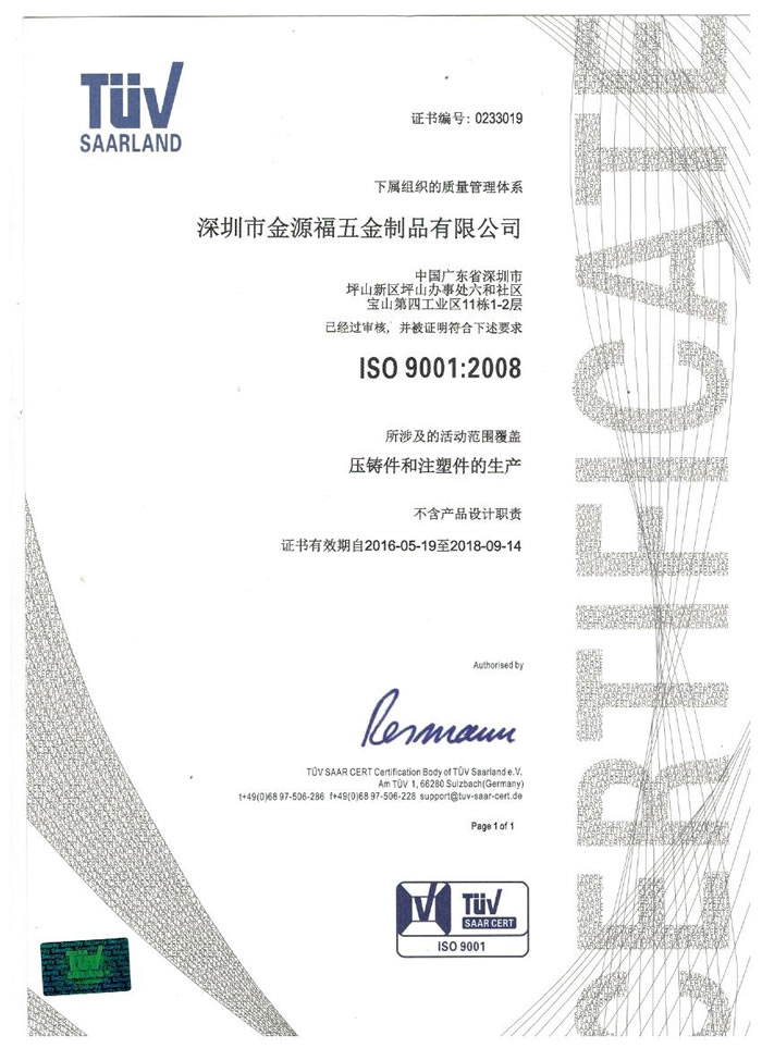 深圳市金源福五金制品有限公司成立于2003年。公司擁有8000多平方米生產(chǎn)廠地、開發(fā)與管理精英人才、技術(shù)專業(yè)、設(shè)備精良、交通便利、服務(wù)周全、具體設(shè)計(jì)、開發(fā)、制模、出樣、生產(chǎn)到成品出貨一體化模式生產(chǎn)廠家。已通過ISO9001:2008ISO1440/TS16949:2009國(guó)際質(zhì)量體系認(rèn)證。專業(yè)生產(chǎn)鋅合金壓鑄、鋁合金壓鑄產(chǎn)品、汽車配件、汽車后視鏡支架、車載導(dǎo)航散熱器、LED散熱器、LED燈罩、數(shù)碼電子五金結(jié)構(gòu)件、家具五金裝飾件、標(biāo)牌(LOGO)等五金壓鑄產(chǎn)品。